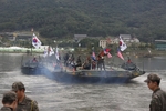 지난 17일 경북 칠곡군 칠곡보 생태공원 일원에서 열린 '제16회 낙동강지구 전투 전승행사'에서 시민들이 공병장비인 문교(門橋) 탑승체험을 하고 있다. 제2작전사령부 제공.