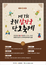 대구 군위군이 25일 1300여 년의 역사가 있는 전통문화 행사 “군위 삼장군 단오축제”를 오는 31일(음력 5월 5일) 효령면 고지바위권역 다목적센터 일원에서 펼쳐진다고 밝혔다. 군위 삼장군 단오축제는 삼국통일의 위업을 이룬 김유신, 소정방, 이무 세 장군의 위패를 모신 효령사에서 예로부터 관민이 함께 단오제를 지내며 지역의 안녕을 기원하고 대동놀이