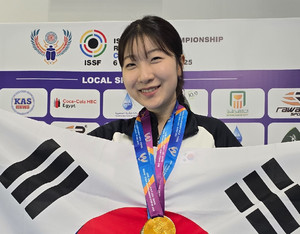 파리올림픽 금메달리스트 반효진(18·대구체고)이 2025 국제사격연맹(ISSF) 카이로 세계선수권대회에서 여자 공기소총 10m 개인전 금메달을 목에 걸었다.오는 2026 아이치·나고야 아시안게임을 앞둔 ‘전초전’ 무대에서 다시 한번 세계 최정상급 실력을 입증했다.8일(한국시간) 이집트 카이로 국제올림픽시타사격장에서 열린 결선에서 반효진은 255점을 기록하며 중국의 왕지페이(254점)를 1점 차로 따돌렸다.이는 한국 신기록이자 세계 기록(255.3점)에 불과 0.3점이 모자란 기록이다.결승 내내 10점대 후반을 이어간 반효진은 한 발