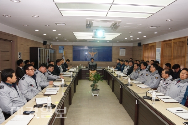 이번 업무보고회는 17년 치안목표로 ‘온기 있는 법 집행 마음이 따뜻한 김천경찰’로 선정하고 주민중심의 온기 있는 법집행으로 패러다임을 전환 문제를 찾아 해결하는 ▶예방치안, 늘 주민 곁에서 과도하지 않은 ▶산소치안, 안정적이고 수준 높은 서비스를 제공하는 ▶시스템치안, 공유와 협업을 바탕을 둔 ▶무지개 치안, 건강하고 역동적인 조직을 만드는 ▶활력치안 등 5대 추진전략에 대한 다양한 방안을 논의했다.