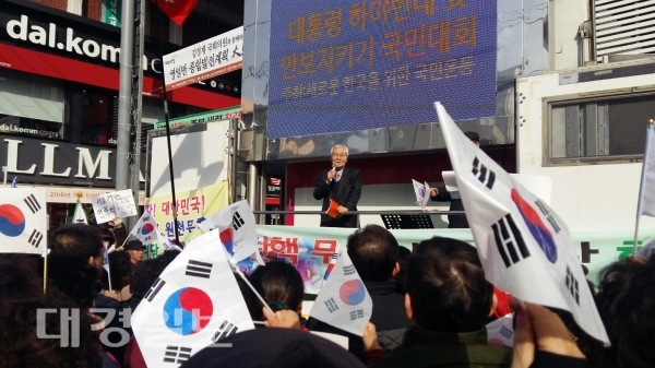 주최측 추산 1000여 명의 시민이 참석한 가운데 개최된 태극기집회는 먼저 사회자의 구호 제창에 따라 ‘대통령 탄핵반대’, ‘대한민국 만세, 자유통일 만세’등을 복창했다.
