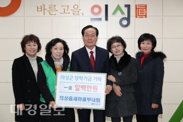 의성읍새마을부녀회가 7일 군청을 방문해 지난 한 해 회원들의 숨은자원 모으기로 조성한 100만원을 장학금으로 전달했다.김정숙 회장은 "의성군의 우수한 인재를 키우는 밑거름이 되길 바라는 마음에서 장학금을 기탁하게 되었으며 앞으로 지역 발전과 인재 양성을 위해 지속적으로 지원할 수 있도록 노력하겠다"고 말했다.