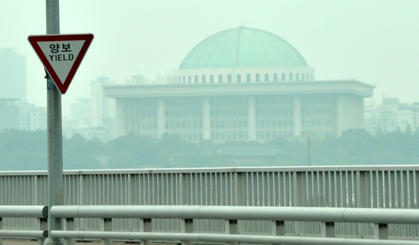 ▲세월호 특별법을 놓고 여야가 대치하면서 26일부터 예정된 분리 국정감사 실시가 불투명해졌다. 새누리당과 새정치민주연합은 휴일인 24일 공식 회동 및 물밑 접촉도 시도하지 않을 것으로 전해진 가운데 현재로선 25일 본회의 여부도 불투명해 당분간 정상적인 국회운영이 어려워 보인다. 사진은 24일 오후 서강대교에서 바라본 국회. |