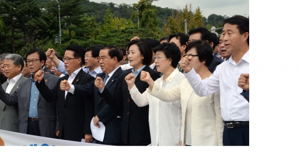 새정치 장외투쟁 돌입···새누리 대화로 논의하자