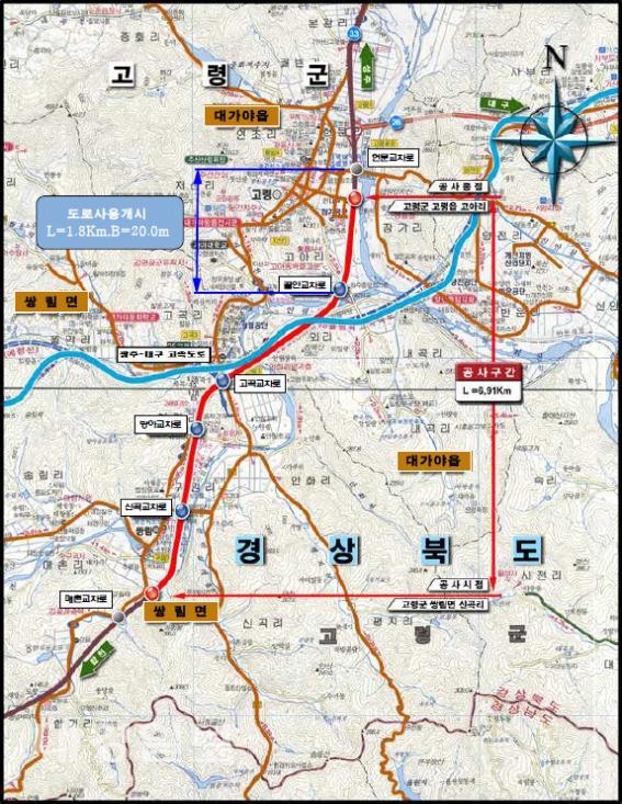 개통구간은 대가야읍 고아리(골안교차로)에서 장기리(헌문교차로)까지 1.8km구간이다.