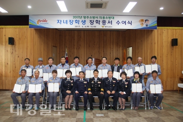 ▲ 영주소방서 제공영주소방서는 지난 6일 영주소방서 대회의실에서 소방공무원, 의용소방대 연합회장 및 의용소방대 자녀장학생 학부모 등이 참석한 가운데 의용소방대 자녀 장학증서 수여식을 했다.이날 장학증서 수여식은 의용소방대원 자녀 중 모범이 되는 대학생 22명(영주10, 봉화12)을 선발해 연간 200만원 이내의 장학금을 지급한다.