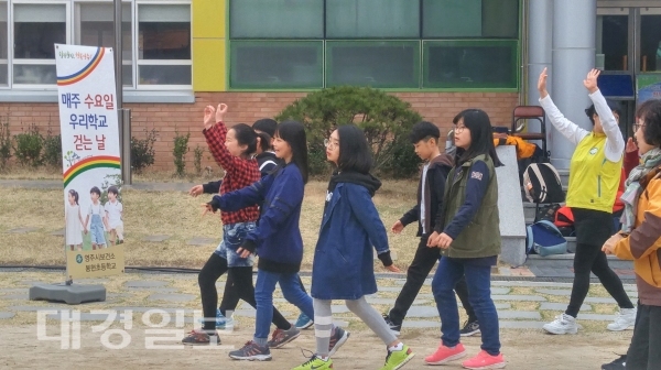 이번 어린이 스쿨워킹데이로 선정된 영주중앙초등학교와 봉현초등학교는 전교생을 대상으로 10주 동안 주1회 수업시작 전 올바른 걷기방법, 함께 운동장 걷기 등으로 상쾌하고 건강한 아침을 열어주고 있다.