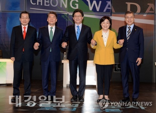 더불어민주당 문재인, 자유한국당 홍준표, 국민의당 안철수, 바른정당 유승민, 정의당 심상정 후보 등 5명의 대선후보는 13일 후보 확정 후 첫 TV토론에서 사드(THAAD·고고도 미사일방어체계) 배치 문제와 북한에 대한 미국의 선제타격시 어떻게 대응할 것이냐를 놓고 날선 공방을 벌였다.