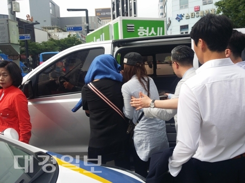 경찰 관계자는 "목격자 진술 등으로 판단할 때 흉기는 실랑이 도중 A씨 가방에서 떨어진 것으로 보인다"며 "A씨 등을 상대로 경위를 조사하고 있다"고 밝혔다.