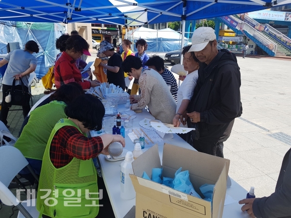 부스를 찾아오는 시민들에게 김천시 생활환경과에서 제작한 올바른 쓰레기 배출 요령 동영상을 시청하게 한 후 이어서 친환경 체험활동(천연모이스쳐미스트 손부채 만들기 등)을 통해 시민들의 흥미를 높였다.