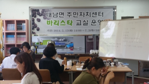경주시 내남면 주민자치위원회(위원장 허순희)에서는 복지회관 1층에서 바리스타 교실을 운영하고 있다.