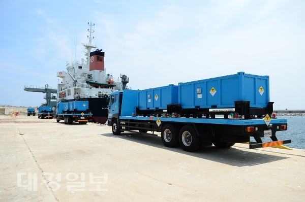 방폐물 드럼은 한울원전 방폐물 드럼저장고에서 운반차량에 상차 후 부지 내 도로를 통해 물양장으로 이동하여 청정누리호(한국원자력환경공단 방폐물 운반선)에 선적된다. 청정누리호는 오는 30일에 경주 방폐장으로 출항할 예정이다.