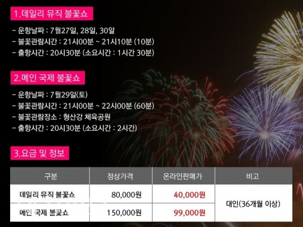 영일만 크루즈는 지난 13일 관련법에 의거해 가격을 조정하기 위해 관할청인 해경에 승선료 변경신고서를 제출했다. 그러나 정상가격인 데일리뮤직불꽃쇼 8만원, 메인국제불꽃쇼 15만원이 아니라 이보다 더 낮은 가격을 제출한 것이다.