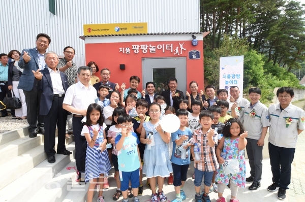 작년 11월 영덕군이 국제아동권리기관 세이브더칠드런과 농어촌아동 지원사업 MOU를 체결하면서 군유지를 제공하고 한솔제지와 세이브더칠드런이 팡팡놀이터 건축을 맡았다.