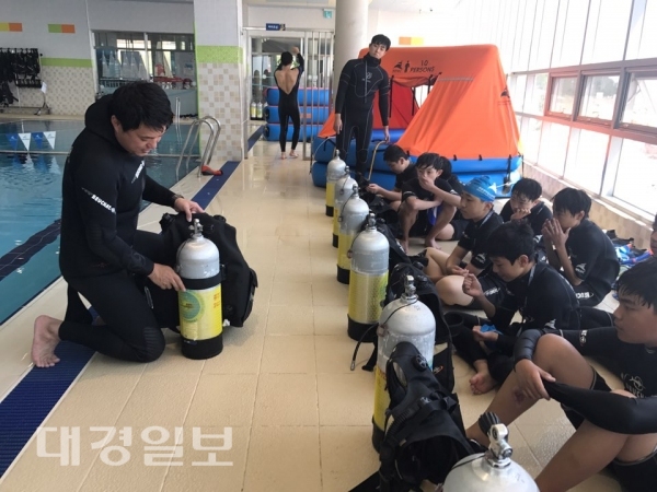 이번 캠프는 해양센터와 국민체육진흥공단이 농어촌 학생 대상으로 다양한 레저스포츠 체험활동 및 진로체험 기회를 제공하는 사업으로 다이빙 이론 및 기초잠수, 해양생물과학, 응급처치활동 등 해양 관련직업을 알고 몸으로 직접체험 할 수 있는 프로그램을 제공한다.