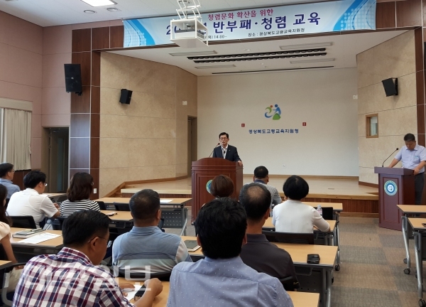 이날 실시된 교육은 성기철 행정지원과장의 부정청탁 및 금품 등 수수의 금지에 관한 법률 주요내용 설명과 전 경상북도교육청 정재원 감사관의 '청렴과 공직가치' 라는 주제로 실시했다.