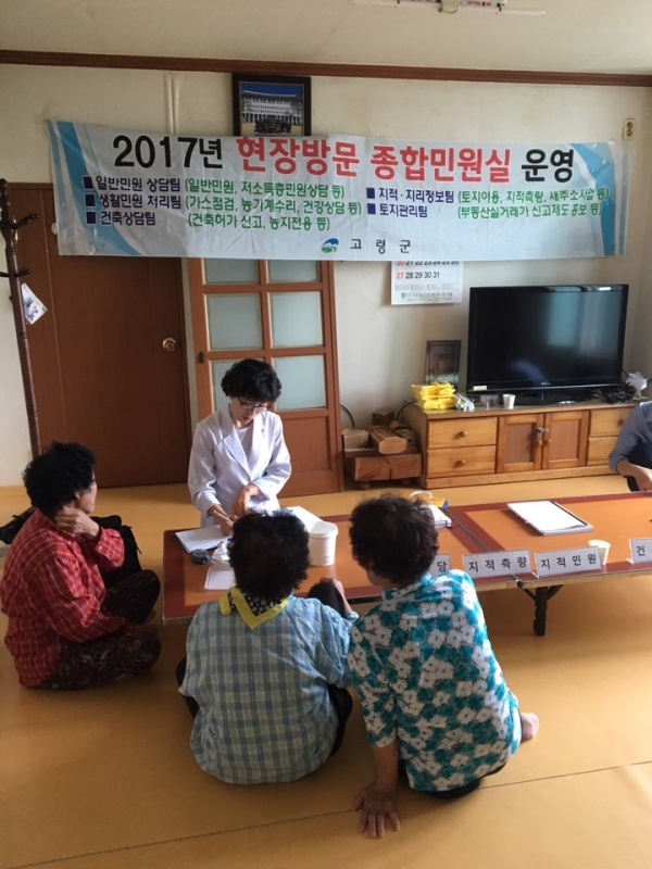 군 관계자는 "교통과 정보통신의 발달로 관공서를 방문하지 않고 처리 가능한 민원도 많아졌지만, 건강체크 상담, 농기계수리 등 이동이 불편한 민원위주로 현장방문 종합민원실을 운영하여 주민편의와 군행정과의 소통을 강화하는 방향으로 운영할 계획" 이라고 말했다.
