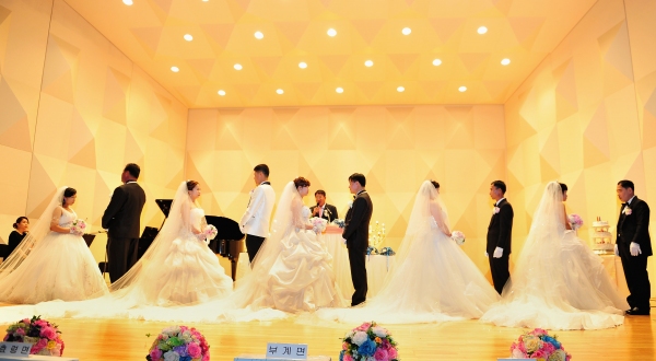 군위군다문화가족지원센터(센터장 김진연 수녀)가 다문화가정 5쌍의 부부가 사랑의 합동결혼식을 13일 삼국유사교육문화회관 공연장에서 심상박 부군수 조승제 군의회의장 등 지역 기관 단체장과 가족, 친지 등 300여명의 하객이 참석한 가운데 가졌다.