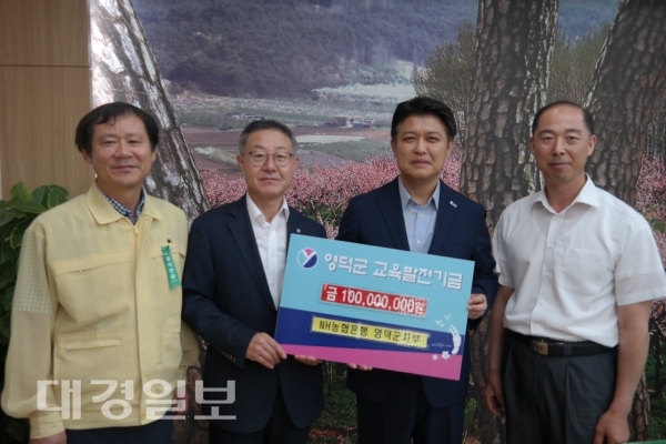 NH농협은행 영덕군지부는 지역사회 발전을 위한 나눔경영 실천의 일환으로 지난 2011년부터 연 1억원씩 총 10억원을 기탁하기로 약정해 이번까지 총 7억원의 교육발전기금을 지원해 왔다.