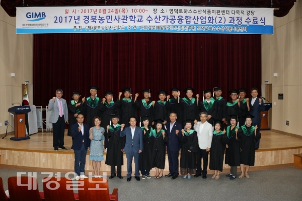 영덕로하스 수산식품 지원센터 강당에서 열린 수료식에는 김승태 경북농민사관학교장을 비롯해 윤위영 부군수, 최재열 군의회의장, 경북도의원, 영덕군의원 및 (재)경북해양바이오산업연구원 김태영 연구원장 등이 참석한 가운데 교육생 21명에게 수료증을 수여했다.