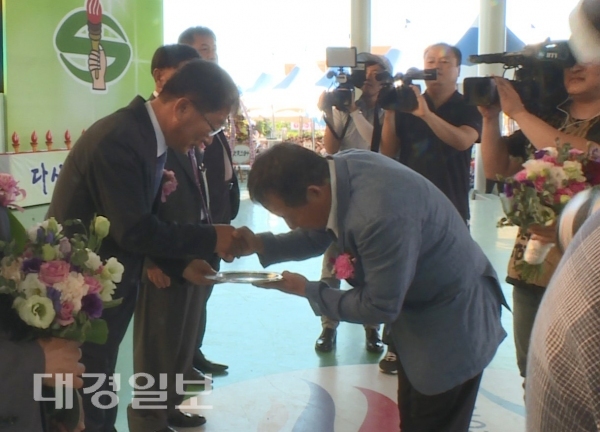 이날 김창오 울진군의회 의장은 노인두 경상북도농촌지도자 연합회장으로 부터 지역농업 발전 및 농촌지도자대회를 적극 지원한 공로로 감사패를 받았다.