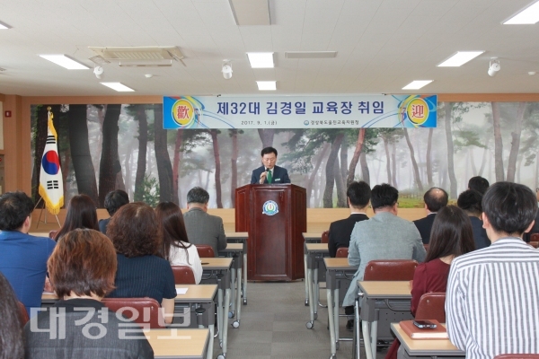 김경일 교육장은 취임사에서 "미래 사회를 살아갈 사람다운 품성을 가꾸고 동시에 창의와 인성을 갖춘 융합형 인재 육성을 위해 최선을 다하겠다”며 "4차 산업혁명이라는 미래 사회의 변화를 예측하고 맡은바 업무에 책임성을 갖고, 일을 하는 자세는 언제나 긍정적이고 열정을 가지고 임해 달라”고 밝혔다.