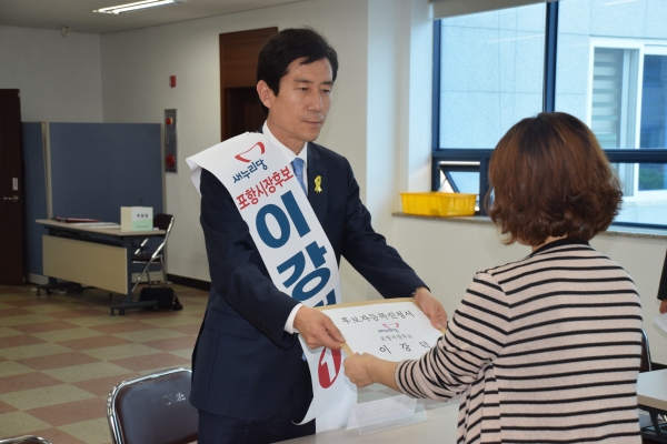 이강덕 새누리당 포항시장 후보는 15일 오전 10시 포항시남구선거관리위원회에서 6.4지방선거 포항시장 후보 등록을 하고 본격적인 선거에 돌입했다.
