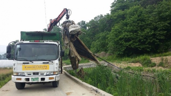 성주군 초전면은 폐부직포의 본격적인 배출시기를 맞아 클린지도자의 활동과 함께 지난15일부터 오는22일까지 집중 수거기간을 정해 마을별 공동 집하장에 적재 돼 있는 폐부직포 수거에 나섰다. 초전면은 지난해 전 사회단체 회원이 합심해 1,000여 톤의 폐부직포를 수거해 예상 발생량의 50%를 수거한 실적이 있으며 올 초에도 100여 톤의 폐부직포를 수거 했으며 이번에는 초전면 전역에 남아 있는 폐부직포를 전량 수거해 클린성주 만들기에 전 행정력을 동원할 계획이다. 한편 이병식 면장은 지난 4월 중순 ~ 5월 중순 까지를 폐부직포 집중 수거의 달로 지정하고 환경지도자의 지속적인 활동을 통해 마을별 공동 집하장으로 폐부직포를 배출토록 홍보지도 했으며, 앞으로 1주일간의 수거 작업을 통해 클린 들녁 조성, 친환경들판 만들기 고품질 참외생산과 농가소득을 증대시키는 정착의 해로 만들자며 환경단체가 그 주역이 돼 달라고 당부했다.