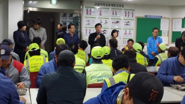포항시의회 복지환경위원회(위원장 김일만)는 지난 6일 새벽 포항시 환경미화원 복지회관을 찾아 환경미화원들의 노고를 격려했다.