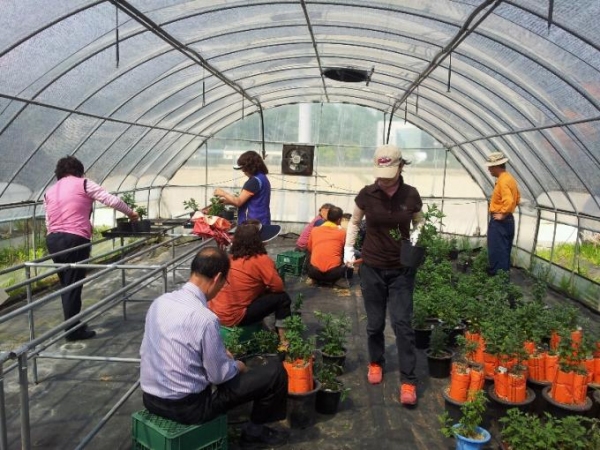 국화연구회 및 우리꽃사랑 연구회원들과 함께 국화전시회 준비를 위해 농업기술센터내 온실에서 석부작, 목부작, 분양작 등의 분재국과 대국 등을 실습하고 전시회에 사용할 화분 도자기를 직접 만드는 등 정성을 쏟고 있다.