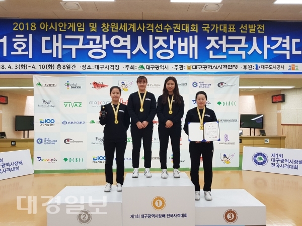 김수경, 편아해, 김지연, 신민옥 선수가 한 조를 이룬 선수단은 지난 3월 6일 제19회 미추홀기 전국사격대회와 지난 3월 15일 한국실업연맹회장배 전국사격대회 우승에 이어 벌써 세 번째 우승과 두 번째 한국신기록을 수립하여 명실상부 전국 최강의 사격팀으로 자리매김하고 있다.