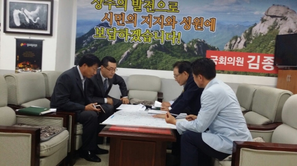 한국농어촌공사 상주지사(지사장 강경학)는 지난 15일 김종태 국회의원 사무실에서 상주시 농업발전을 위한 마스터플랜을 수립해 김종태 의원에게 직접 설명했다.