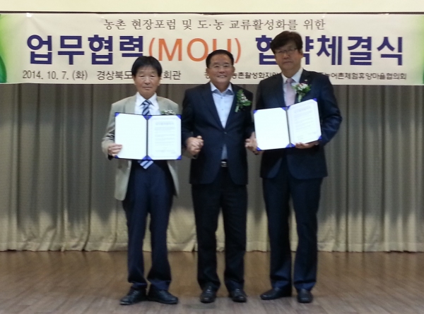 이날 교육에 앞서 농촌현장 포럼 및 도·농교류 활성화를 위한 경북농어촌체험휴양마을협의회(회장 김병만)와 경북대학교 농촌활성화지원센터(센터장 장우환) 간의 전략적 업무협력 MOU 체결식이 열렸다.