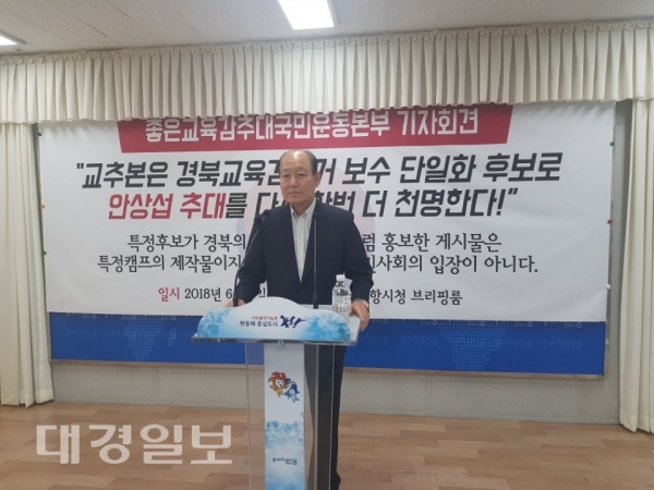 이에 “교추본은 안상섭 후보에게 표를 몰아주는 길만이 좌파교육감이 교육현장에 들어가는 길을 근본적으로 차단하는 길”이라고 강조했다.