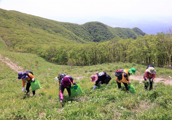 <사진설명>제10회 영양산나물축제가 열리는 일월산에서 관광객들이 산나물채취 체험을 하고 있다.
