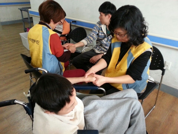 손에 손잡고 봉사단은 팀별로 나누어 주1회 포항시 장애인 시설, 노인시설에 가서 핸드마사지&네일아트 프로그램 봉사를 실시하고 있다.