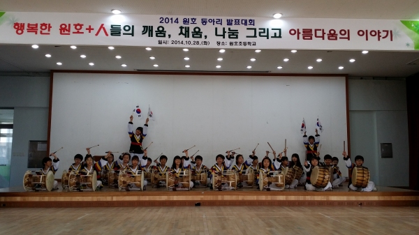 가르침과 배움이 살아 숨 쉬는 구미 원호초등학교(교장 조동익)는 학생들의 요구와 흥미를 바탕으로 자율적으로 참여한 동아리활동에서 그동안 갈고 닦은 특기와 끼를 뽐내는 자리를 마련하기 위해 28일 ‘2014 원호 동아리 발표대회’와 ‘동아리 작품 전시회’를 개최했다. 원호초 학생 동아리는 특기적성계발과 진로설계능력신장 및 창의․인성교육을 목적으로 특기적성부서와 청소년단체를 포함하여 총 40여개가 활동하고 있다.
