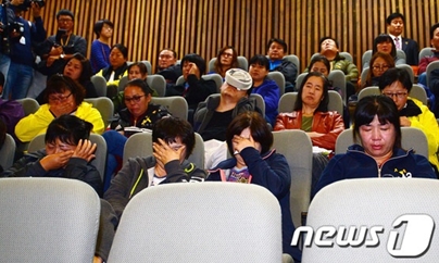 ▲세월호 참사 유가족들이 7일 오후 국회 본회의 참관 중 세월호 특별법이 통과되자 눈물을 흘리고 있다. |