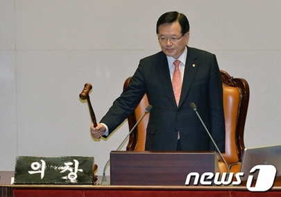 ▲정의화 국회의장이 7일 국회 본회의에서 4·16 세월호참사 진상규명 및 안전사회 건설 등을 위한 특별법안 가결을 선포하고 있다. |