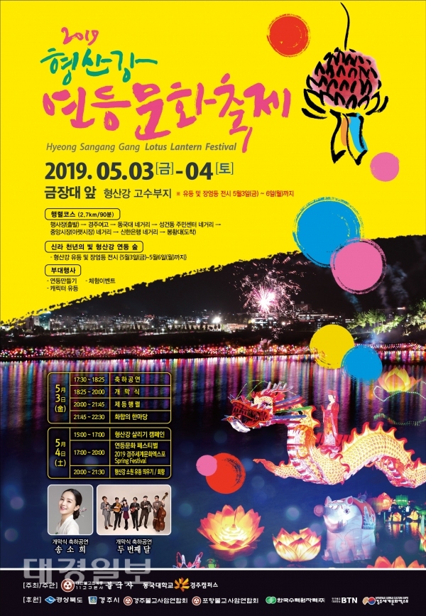 신라시대에 시작된 연등회의 역사적 의미를 현대에 되살려 개최되는 형산강 연등문화축제는 내달 3일 개막축하공연을 시작으로 4일까지 유등 및 장엄등 전시, 제등행렬, 다양한 체험, 페스티벌, 형산강 소원 유등 띄우기 등으로 진행된다.
