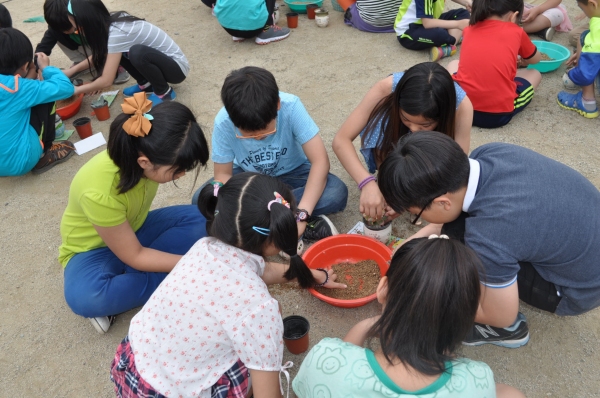 학생들은 먼저 재벌구이 한 화분을 개성 있게 꾸몄다. 무늬나 그림을 스케치하고 어울리는 색을 칠하는 활동을 통하여 자신이 심게 될 꽃에 대해 생각을 나누고 운동장에 함께 모여 자유로운 분위기에서 자신만의 화분을 만들었다. 학생들은 자신이 만든 화분을 교사, 친구들과 함께 보고 느낌을 나누었고 예쁜 점을 찾아 칭찬을 나누었다. 아울러 사제 간의 돈독한 정도 키우는 시간이 되어 의미가 더 컸다. 권수진 기자