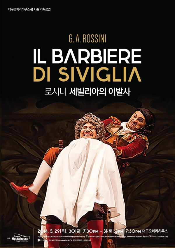 대구오페라하우스의 <세빌리아의 이발사>는 오는 29~30일 오후 7시 30분과 31 오후 3시, 7시 30분 총 4회에 걸쳐 공연된다. 티켓 가격은 7만원~1만원까지 다양하며 인터파크(http://ticket.interpark.com)와 대구오페라하우스 홈페이지(http://www.daeguoperahouse.org)를 통한 인터넷 예매와 전화예매가 가능하다. *예매 및 할인안내: 053-666-6023.