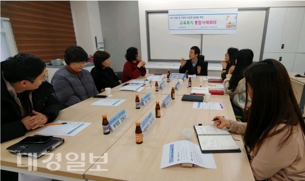 ▲ 지난달 28일 대해초등학교에서 맞춤형복지팀, 심리상담센터, 경북가정위탁지원센터 등 전문가들이 모여 조손가정에 대한 2차 통합사례회의를 가졌다.포항시 해도동 맞춤형복지팀은 최근 포항남부경찰서, 대해초등학교 등과 함께 위기에 처한 아동·장애인에 대한 통합사례회의를 가졌다.