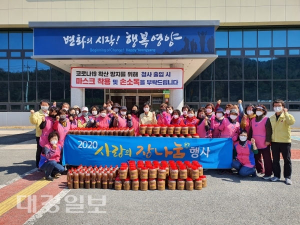 한국생활개선영양군연합회는 지난 2007년부터 회원들이 직접 준비한 메주를 십시일반 모아 장을 담그고, 1년 동안 항아리에서 잘 숙성된 된장(420kg), 간장(250L)을 용기에 담아 지역 내 독거 어르신·저소득 가정 등 취약계층 150여 곳으로 나눔 배달을 하면서 따뜻한 사랑을 실천해 오고 있다.