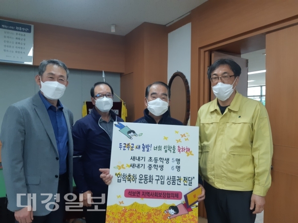 영양군 석보면지역사회보장협의체(공동위원장 강상수·장수상)는 최근 입학 초·중학생 11명에게 운동화 구입 상품권(10만원)과 축하 편지를 전달했다. 임범규 기자 bk8824@hanmail.net 다른기사 보기 저작권자 © 대경일보 무단전재 및 재배포 금지 당신만 안 본 뉴스 李대통령 “성과는 충분”… 재계 “국내 투자 확대하겠다” 신천지자원봉사단 대구지부, 대명역·관문시장 환경정화활동 실시 [부서탐방] 지역발전 대동맥...사통 팔달 교통망 확충 앞장 ‘구미시 도로 철도과’ 튀르키예서 독일인 일가족 숨져… 길거리 음식인가, 호텔 오염인가 [단독] 수능 끝났는데도 1시간가량 ‘대기’… 포항 두호고 수험생들 불만 ‘AI 버블’ 경계·美 금리 불확실성… 코스피 4000선 무너졌다 유재춘 이사장, 국회에 새마을금고 규제 완화 건의 李대통령 “성과는 충분”… 재계 “국내 투자 확대하겠다” 댓글삭제 삭제한 댓글은 다시 복구할 수 없습니다. 그래도 삭제하시겠습니까? 비밀번호 닫기 기사 댓글 0 댓글 접기 로그인 후 이용 가능합니다. 댓글 내용입력 비회원 로그인 이름 비밀번호 댓글 내용입력 댓글쓰기 계정을 선택하시면 로그인·계정인증을 통해 댓글을 남기실 수 있습니다. 회원 로그인 비회원 글쓰기 이름 비밀번호 자동등록방지 로그인 옵션 창닫기 주요기사 [이철우 칼럼] 행복을 유예하지 마라 [역사탐방] 일본서 꽃 피운 조선의 음식문화 해병특검, 공수처장·차장 기소··· 국회 위증 사건 방치 혐의 [속보] '6000만원 수수 혐의' 노웅래 전 의원 1심 무죄 與, 대미투자특별법 발의··· 美 관세 11월1일 소급 적용 與, 퇴직 대법관 수임 제한·법원행정처 폐지 추진… 법원 “사법권 침해” 반발