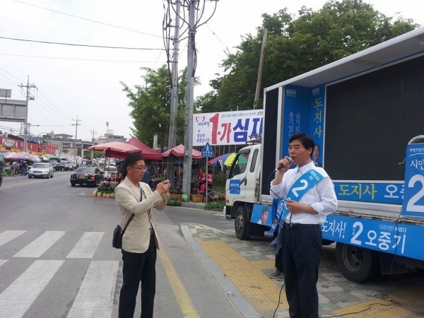 새정치민주연합 오중기 후보도 25일 영주, 안동, 의성, 청송 등 경북의 북부권을 돌며 추격의 고삐를 당겼다.
