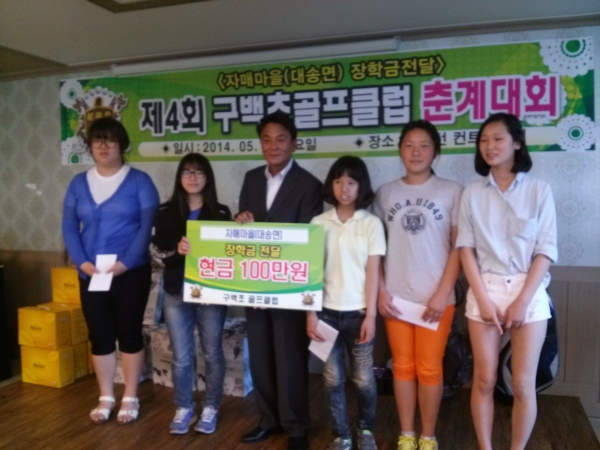 구백초골프클럽(이하 구백초)은 지난 25일 대송면 소재 저소득 청소년 5명에게 각각 장학금 20만원을 전달했다. 구백초의 봉사활동은 동호회 창간 이후부터 꾸준하게 이어오고 있으며 대송면(면장 하영길)과는 지난 2011년도부터 인연을 맺어 매년 2회 이상 이웃돕기 성품을 전달하는 등 지역민들과 따뜻한 정을 나누고 있다.