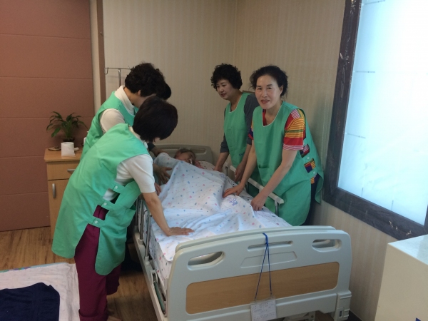 이날 급식학교 조리사 5명은 영하의 날씨에도 불구하고 요양병원 어르신 한분 한분 목욕을 해 드리고 준비한 귤 등 다과와 함께 훈훈한 정이 살아 넘치는 아름다운 이야기로 하루를 보내면서 봉사활동을 했다.