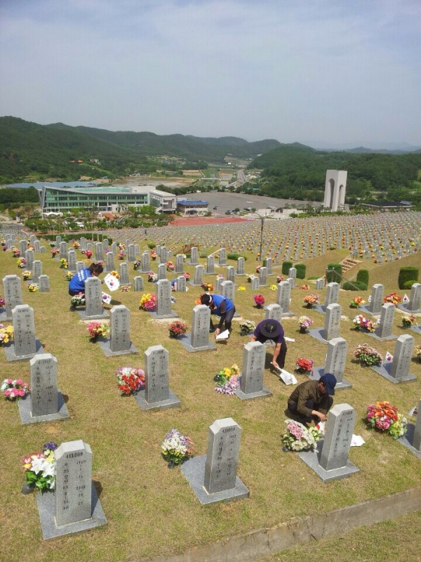 이날 행사는 현충탑 참배 후 월남참전군인 묘역과 6.25참전 묘역 등 3천여기의 묘역 내 비석을 닦고 태극기를 꽂았으며, 주변 쓰레기 줍기 등 묘역정화활동을 시행하며 호국영령의 숭고한 넋을 기렸다.