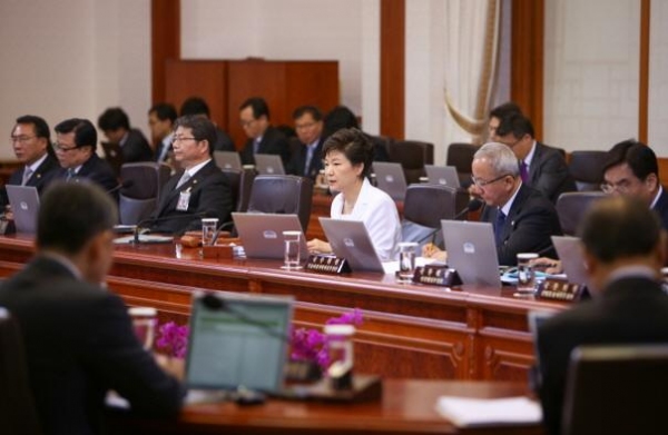 ▲박근혜 대통령이 27일 청와대에서 열린 국무회의에서 모두발언 하고 있다. |